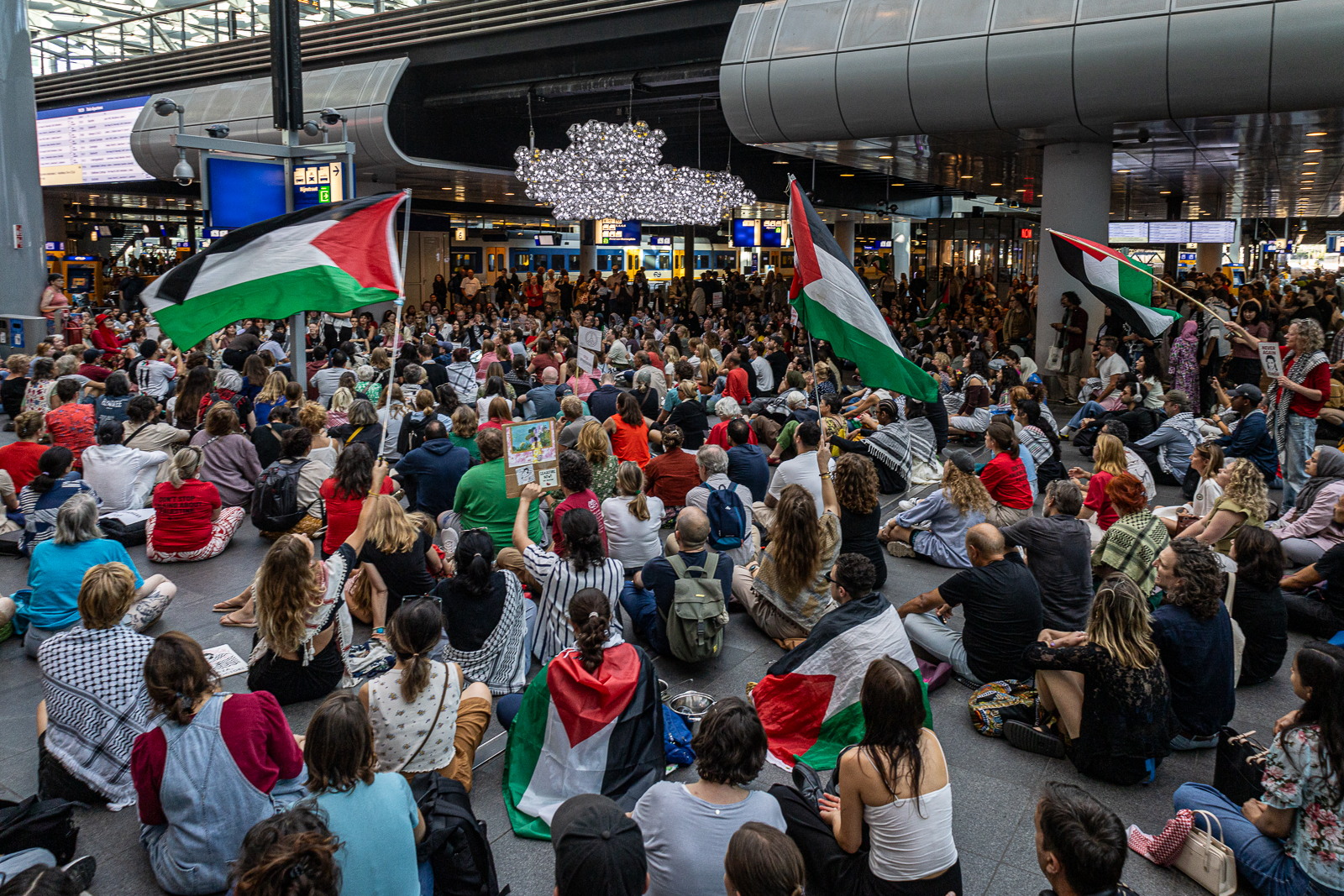 Op het Centraal Station zijn donderdagmiddag honderden mensen bijeengekomen om te protesteren tegen de uithongering van de bevolking van Gaza. “Het idee dat er genoeg eten aan de grens staat maar door Israël niet wordt doorgelaten, is onmenselijk.”